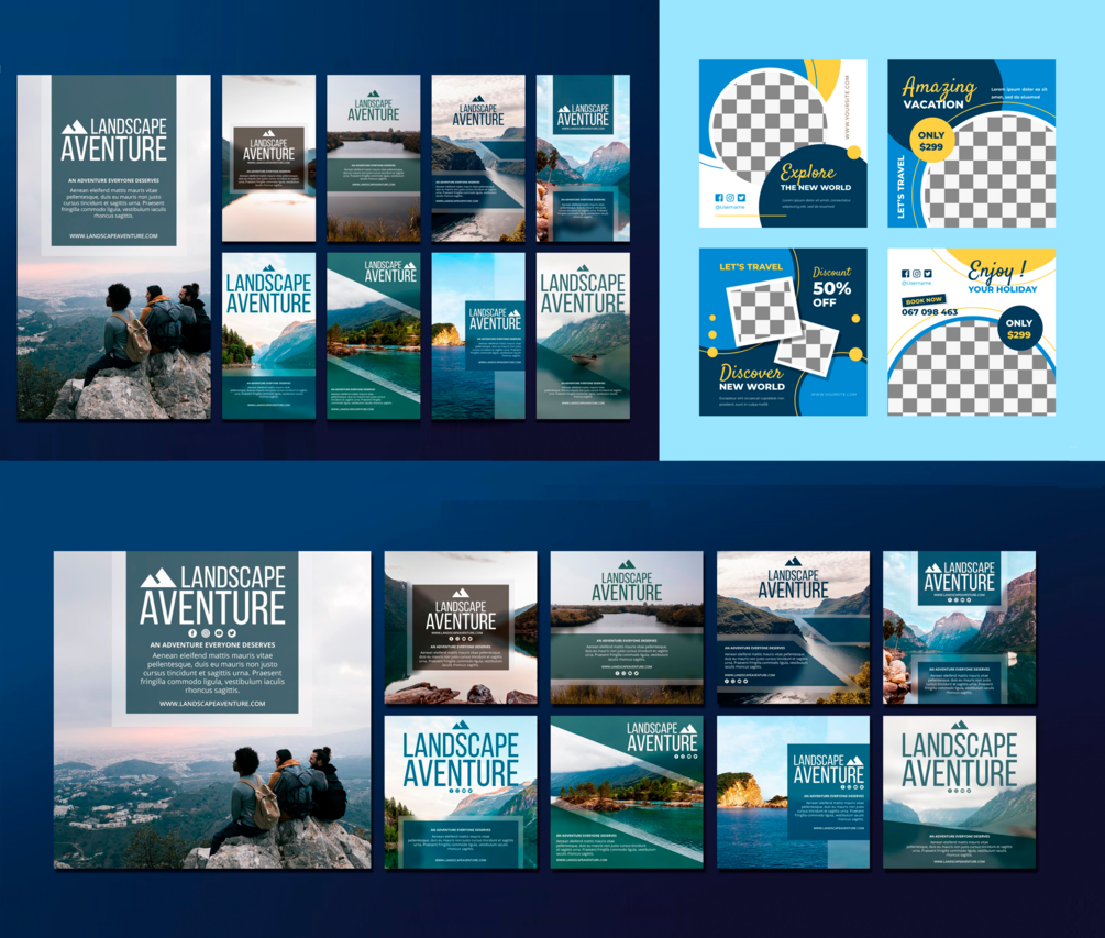 Inspiración para la promoción de los VIAJES y TURISMO. PACKS de Banners para realizar campañas publicitarias en las redes sociales.