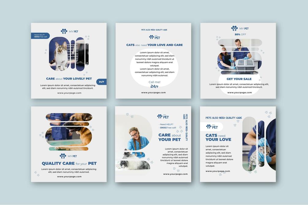 Inspiración para la promoción de las VETERINARIAS. PACKS de Banners para realizar campañas publicitarias en las redes sociales.