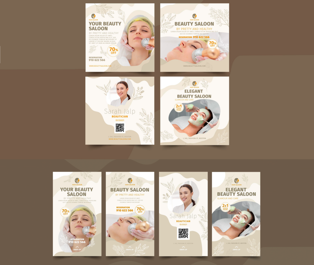Inspiración para la promoción de tu SALóN de BELLEZA. Estos son Banners para realizar campañas publicitarias en las redes sociales.