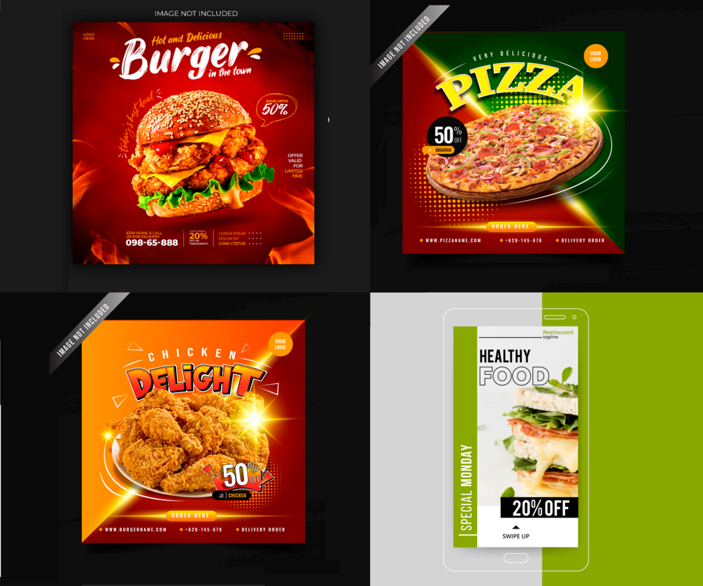 Inspiración para la promoción de la HOSTELERÍA. PACKS de Banners para realizar campañas publicitarias en las redes sociales.